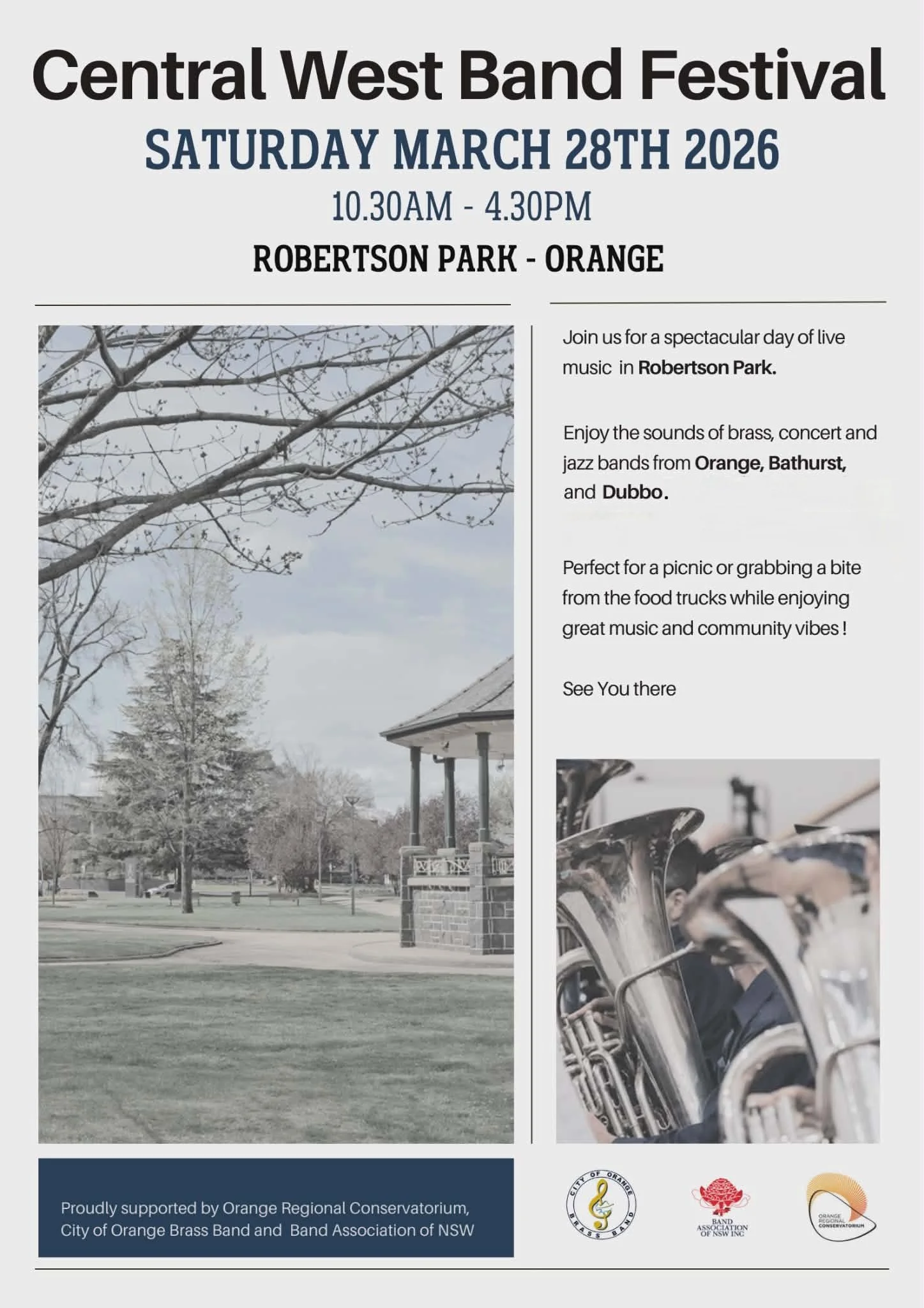 Join bands of the Central west for a whole day of music FREE in Robertson Park. Bands performing on the day are:
